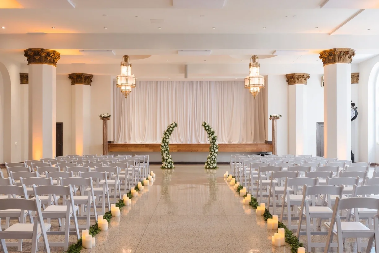 (2-hour ceremony or cocktail hour in Gatsby Ballroom, followed by 4-hour reception in Grand Ballroom):